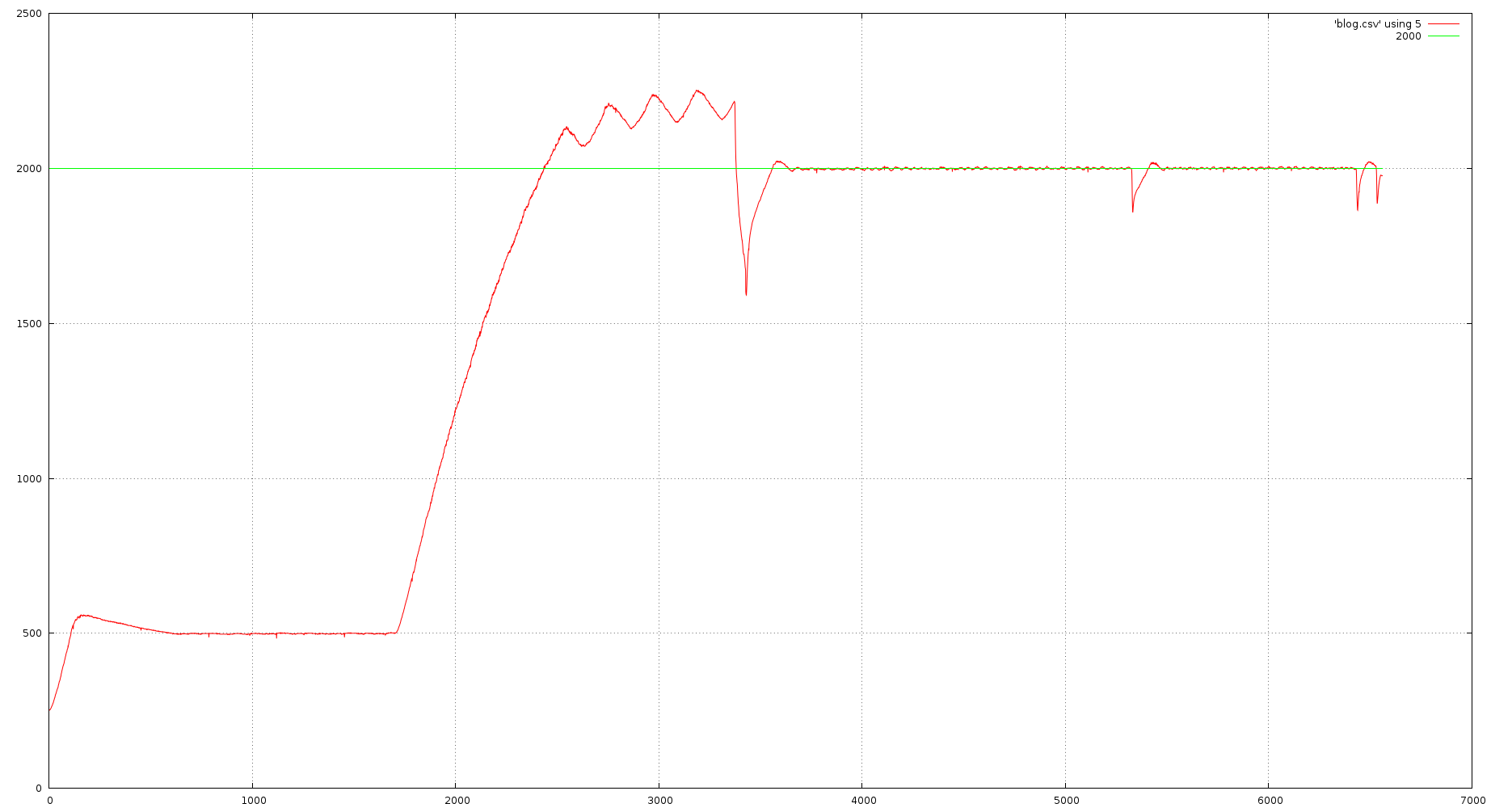 A down-side is that a PID algorithm needs to be tuned. There are several standard ways to tune the algorithm – most involve sitting down and working through the parameters, tweaking one at a time and checking the graphs and there are some auto-tune algorithms too. I adapted an auto-tune algorithm, but it didn’t work very well, so I sat down and made a few approximations to the tuning parameters then tweaked them after a few real runs. It’s not yet perfect, but more than good enough to bake a sponge cake. Currently it overshoots by a degree or 2 (this is more apparent at lower temperatures) but it isn’t an issue whatsoever.