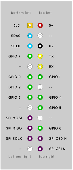 This is a copy of the first GPIO pinout diagram. It was published on the elinux.org wiki site on the 13th March, 2012. This is what I originally based my wiringPi pin numbers on.